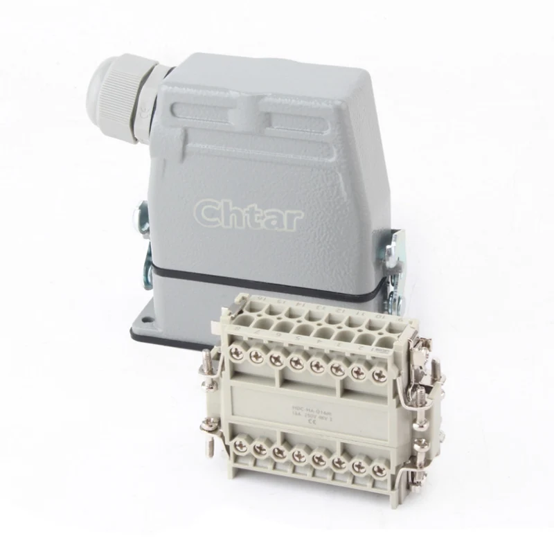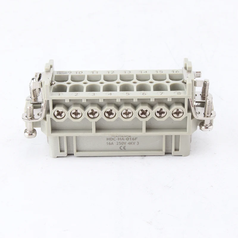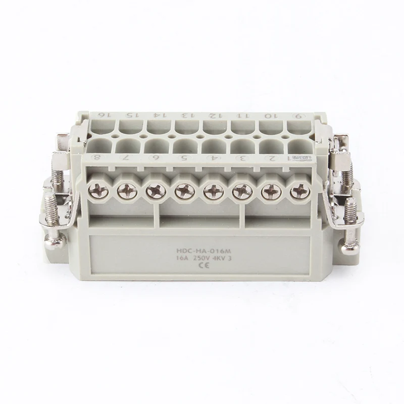 16ए 10 पिन इंसर्ट हेवी ड्यूटी कनेक्टर महिला और पुरुष निष्क्रिय भाग हैं। HA-016-M और HA-016-F नर और मादा भाग हैं, वे एक सेट के रूप में एक दूसरे से मेल खाते हैं। वे H16A के एल्युमीनियम हाउसिंग के साथ मिलकर काम कर रहे हैं। सम्मिलित घटक और बाहरी आवास मिलकर एक पूर्ण कनेक्टर उत्पाद बनाते हैं। वे पीसी शेल और सिल्वर प्लेटेड पीतल पिन से बने होते हैं। सिल्वर प्लेटेड पिन इसे अच्छी तरह से विद्युत कनेक्शन बनाते हैं।