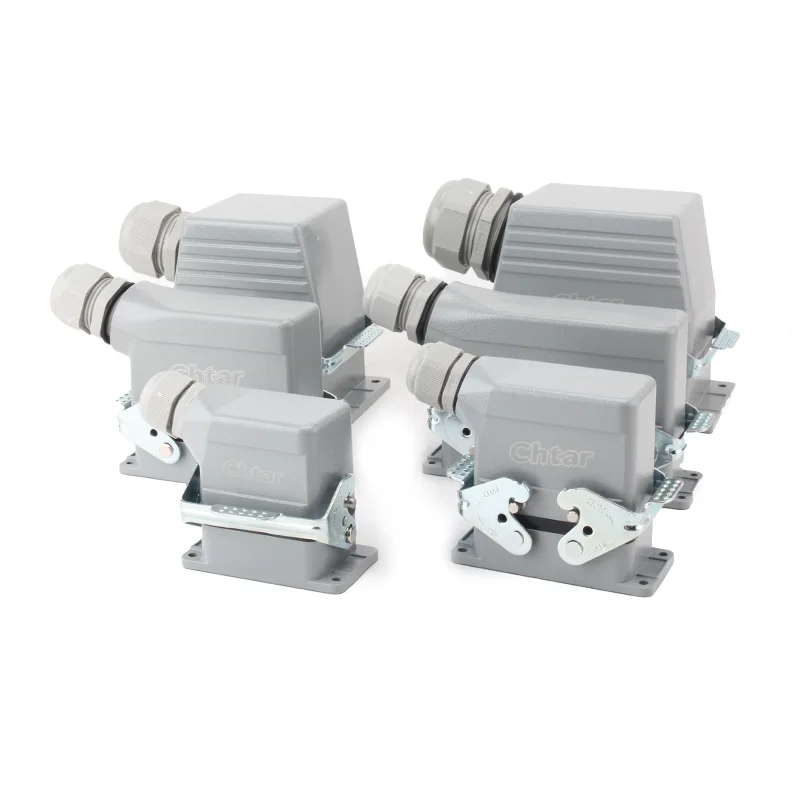 सीएचटीएआर द्वारा डिजाइन और निर्मित टिकाऊ 24 पिन एजी हेवी ड्यूटी कनेक्टर 24-पिन एचई, एचडी, एचईई, एचडीडी और अन्य हेवी-ड्यूटी कनेक्टर के लिए उपयुक्त है। कनेक्टर एल्यूमीनियम मिश्र धातु से बना है और RAL7037 ग्रे पाउडर से लेपित है। इसका ऑपरेटिंग करंट 16A है, ऑपरेटिंग वोल्टेज 500VAC है, ऑपरेटिंग तापमान रेंज -40℃ से +125℃ (-40℉ से +257℉) है, प्लगिंग और अनप्लगिंग चक्र 500 गुना है, और सुरक्षा ग्रेड IP65 है।