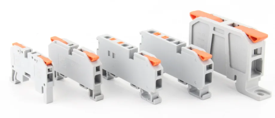 लीवर के साथ डिन रेल स्प्लिसिंग वायर क्विक कनेक्टर प्रसिद्ध पुश-इन वायर कनेक्टर हैं और इन्हें डिन रेल पर असेंबल किया जा सकता है। इन्हें विभिन्न मात्रा में ठोस या फंसे हुए तांबे के कंडक्टर विद्युत कनेक्शन उपकरणों को सुरक्षित रूप से जोड़ने के लिए डिज़ाइन किया गया है। उनका मुख्य कार्य विद्युत तारों में एक विश्वसनीय, स्थायी और मुफ्त रखरखाव स्प्लिस की आपूर्ति करना है।